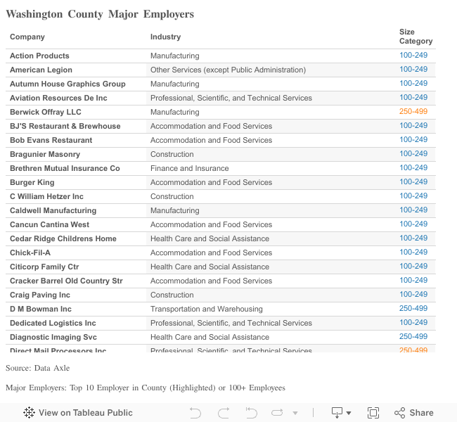 Washington County - Major Employer Lists (Listed Alphabetically) - Workforce Information & Performance
