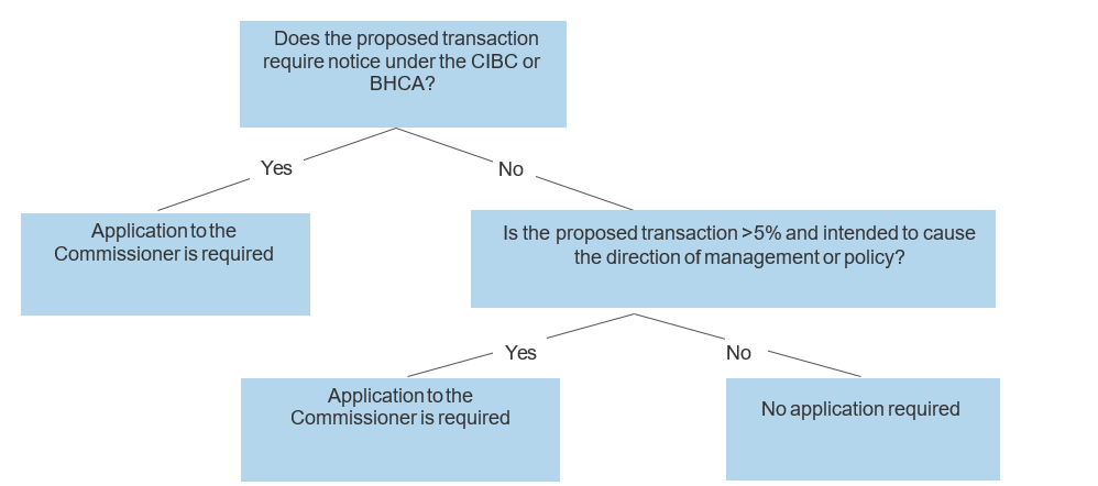 - The Commissioner is charged with determining whether any change in control will be anticompetitive or threaten the safety and soundness of the institution.