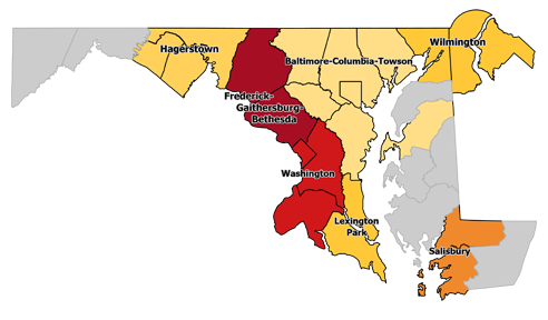 1."2010-based metropolitan and micropolitan areas in Maryland and the District of Columbia." Bureau of Labor Statistics.